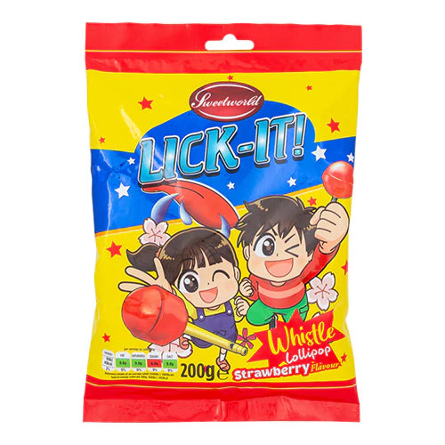 Sweetworld Lick-It! Whistle Lollipop Strawberry 200g