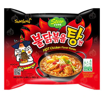 Experience the fiery and delicious flavors of Samyang Buldak Stew Type Hot Chicken Flavour Ramen Noodles! This pack includes five servings of chewy ramen noodles in a savory, spicy broth. Perfect for satisfying cravings and igniting your taste buds!